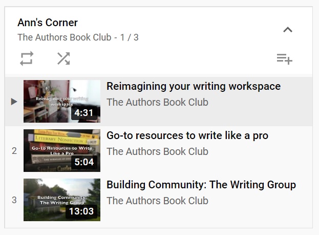 Ann’s Corner features videos for writers and readers interested in the writing world.